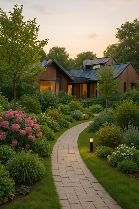 Архитектура в общей концепции квартала, подчеркивает формы скандинавской архитектуры.