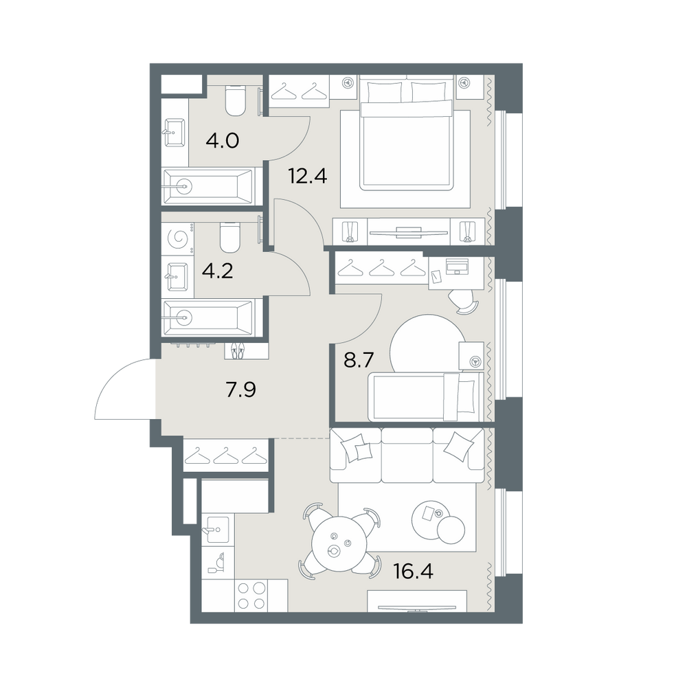 893-комнатная57.2 м²