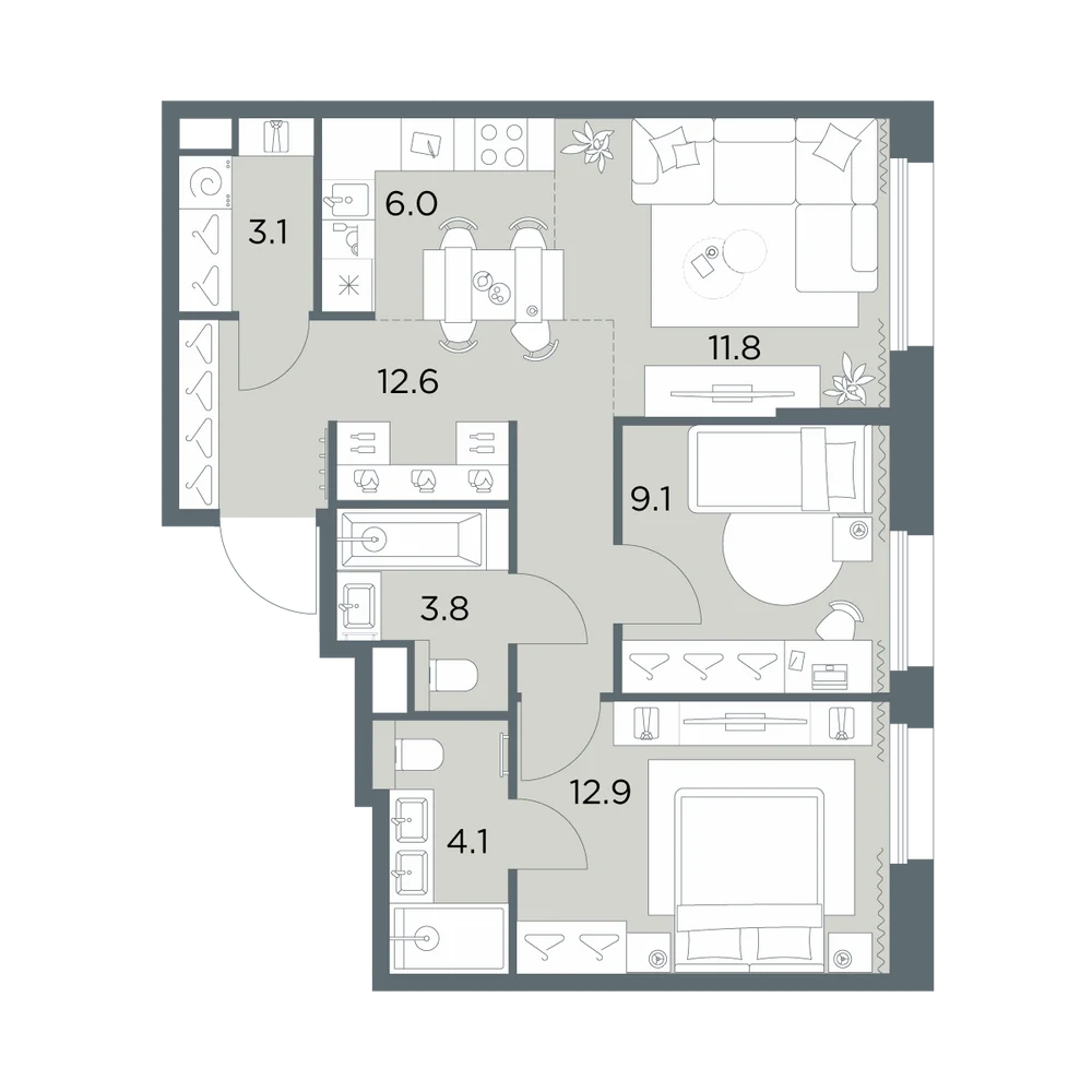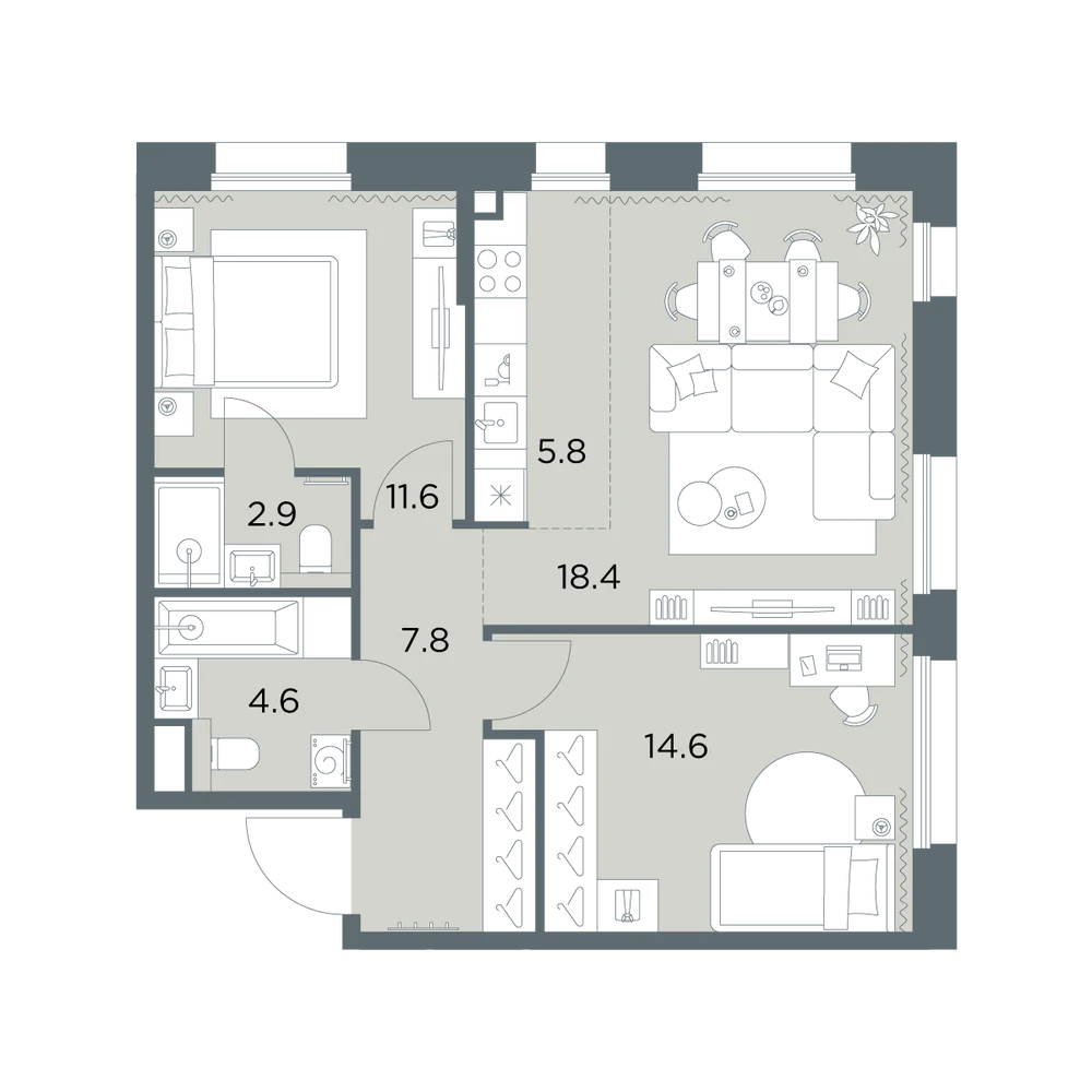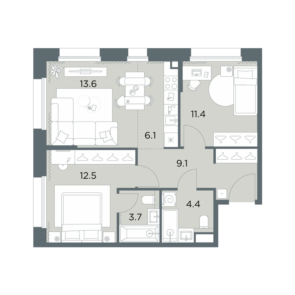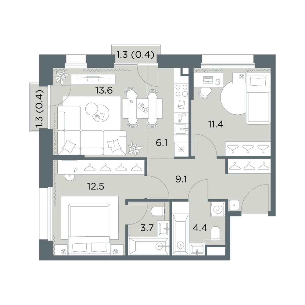 3-комнатная
