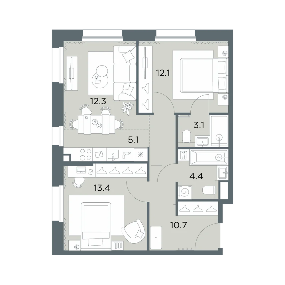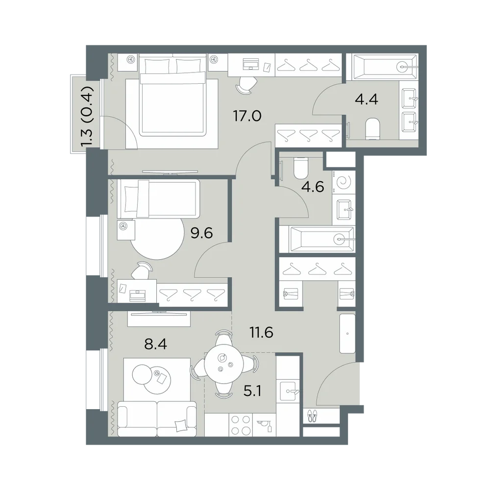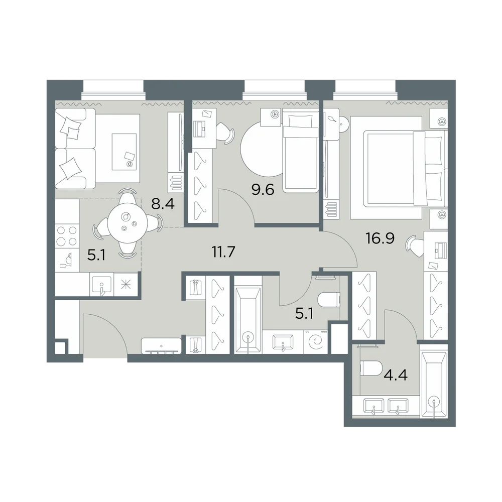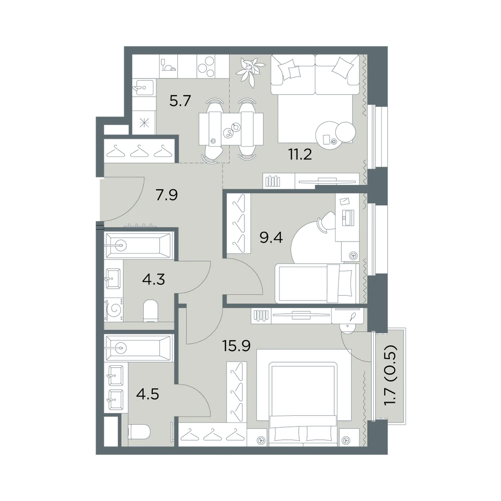 3-комнатная