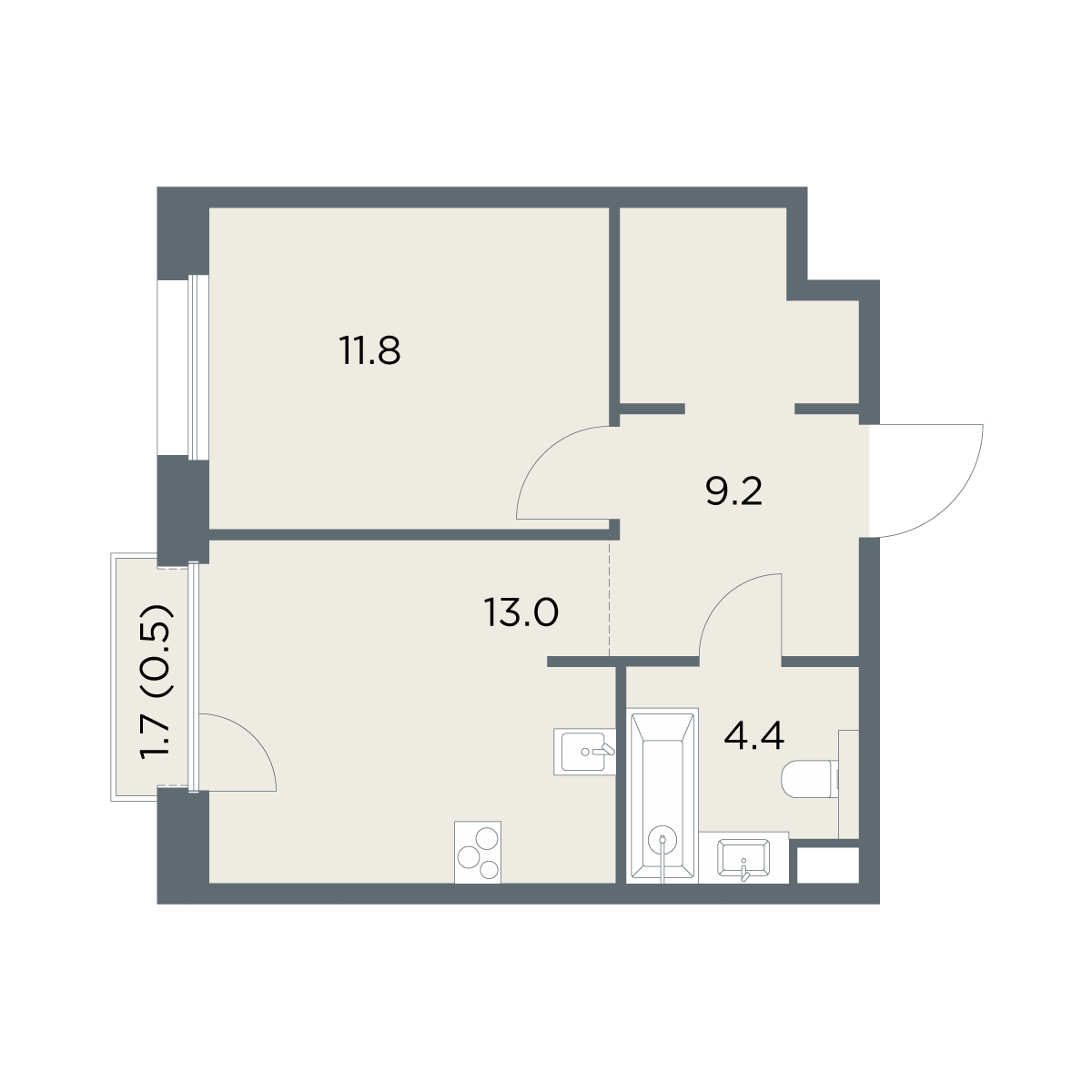 1-комнатная 38.9 м2