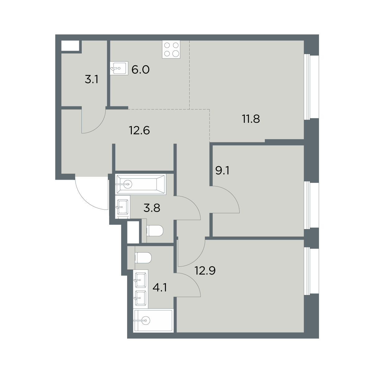3-комнатная