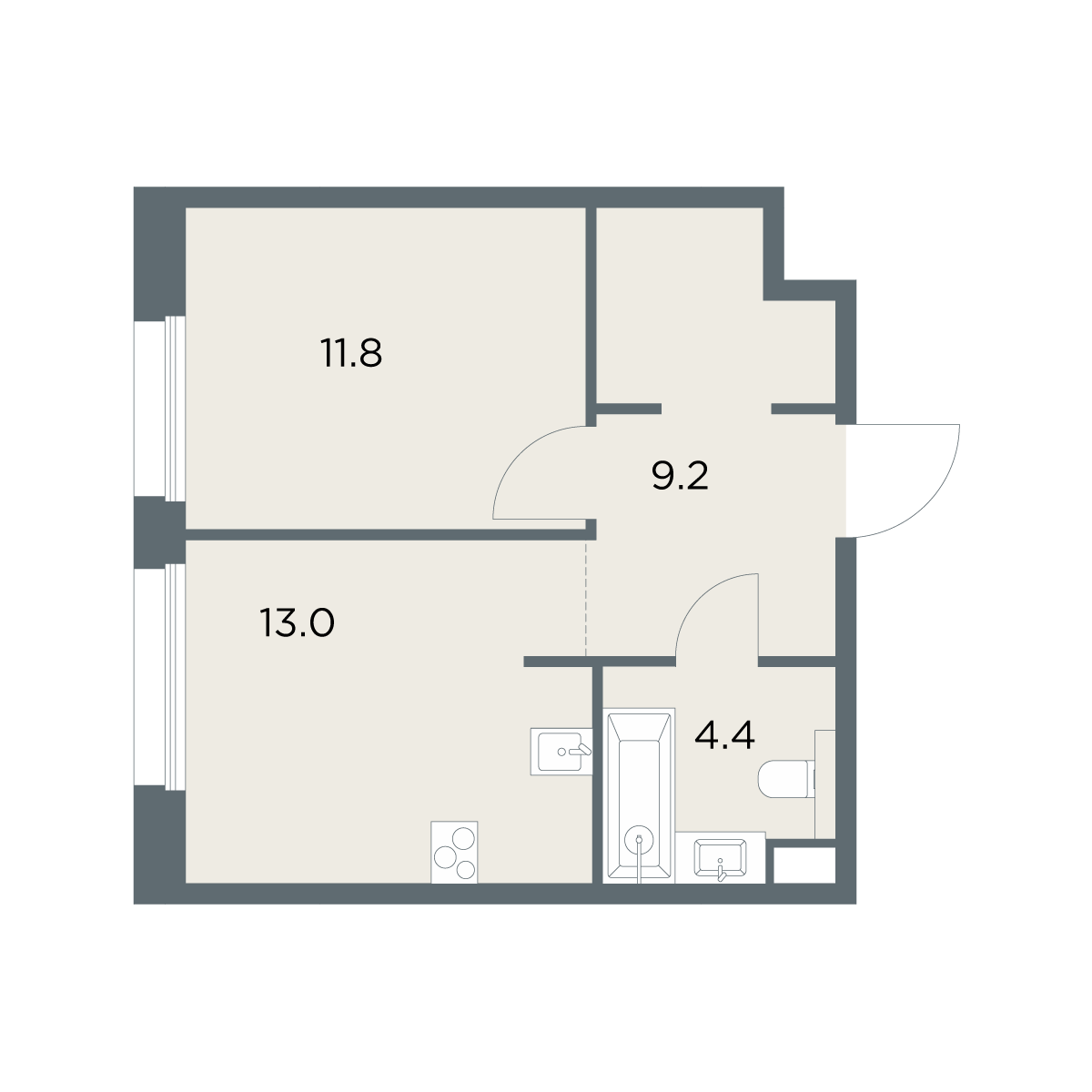 1-комнатная 38.4 м2