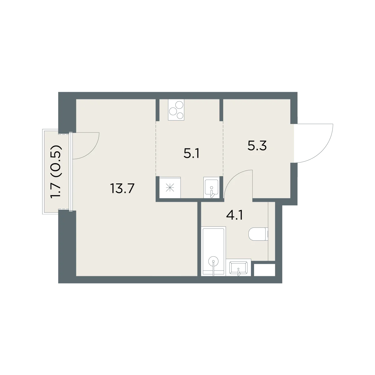 Студия 28.7 м2
