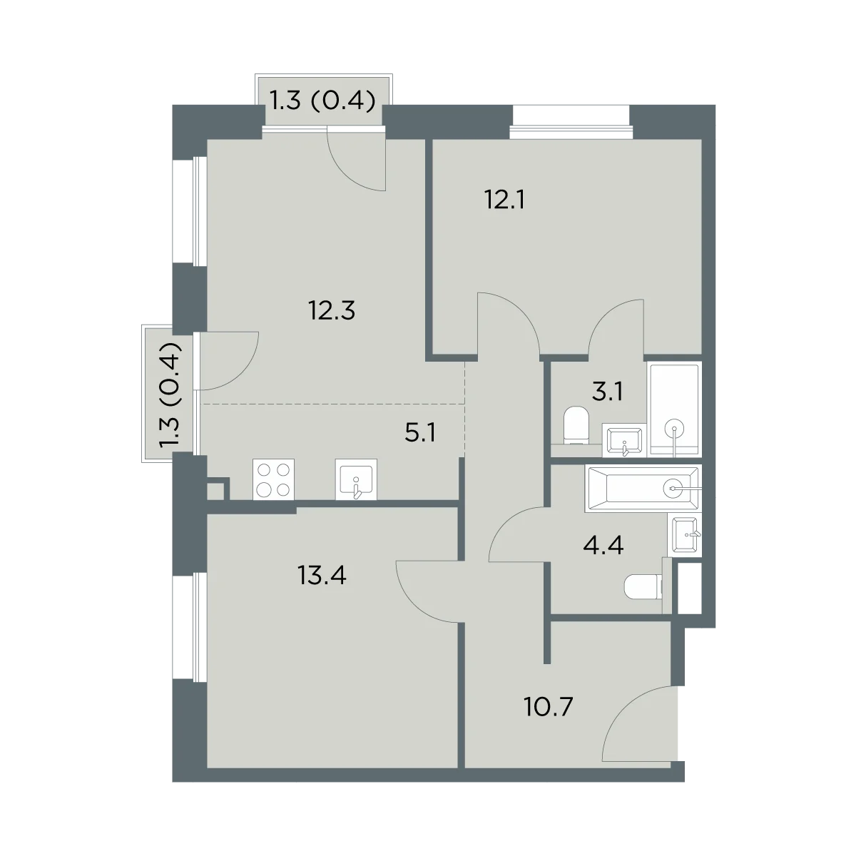 61.1 м2