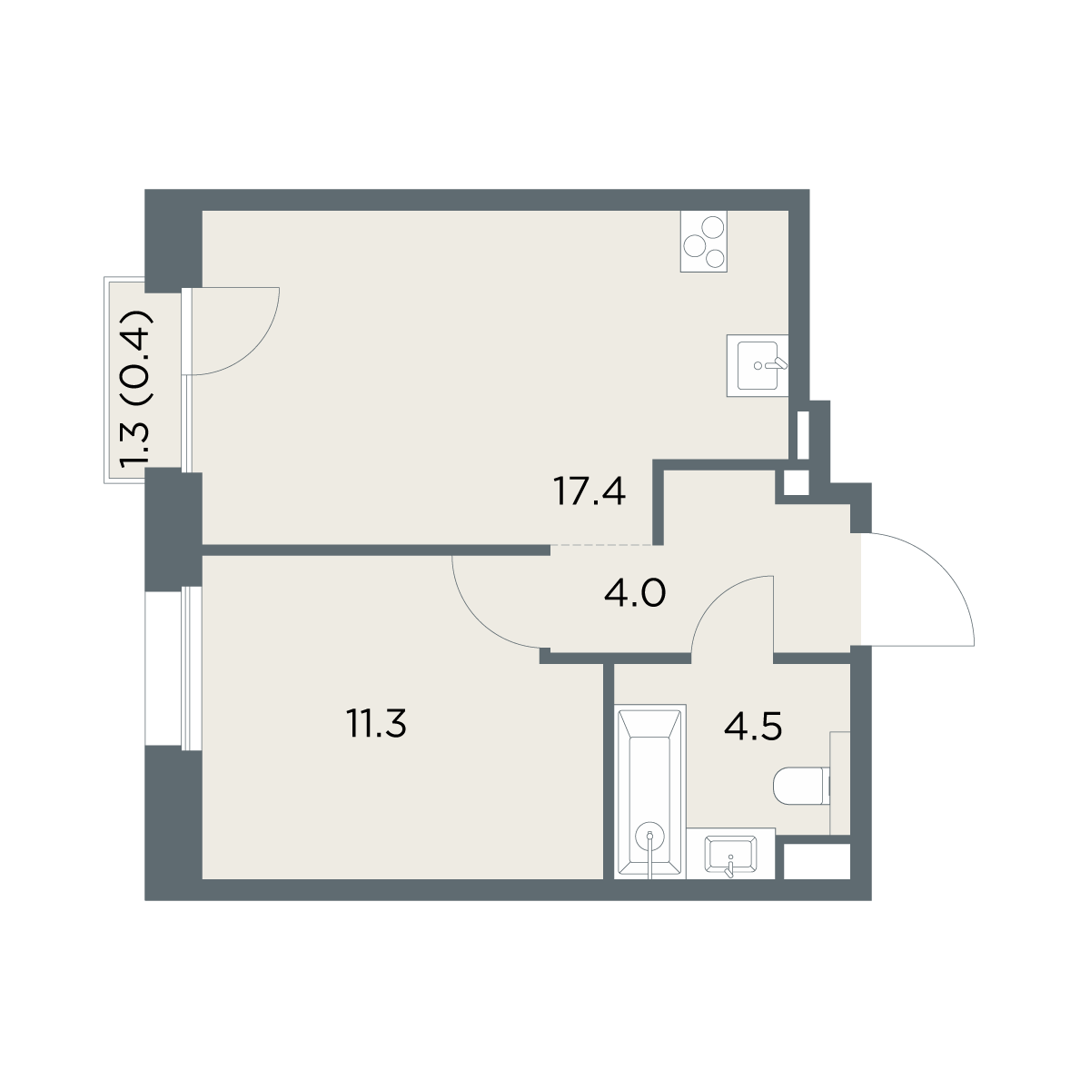 1-комнатная 37.6 м2
