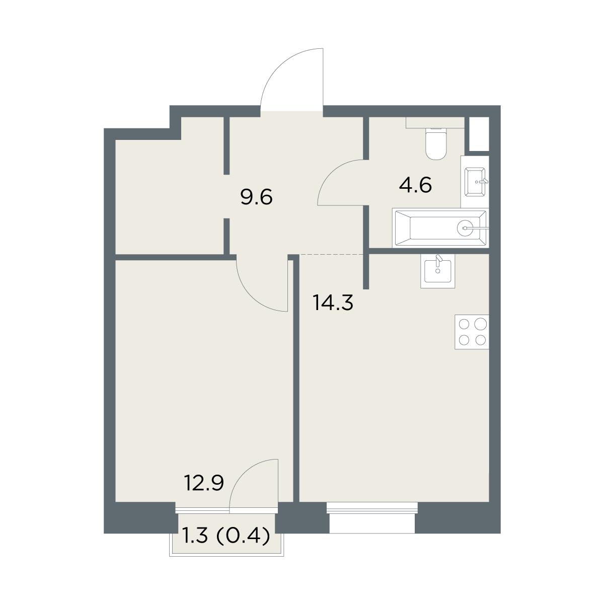 1591-комнатная41.8 м²